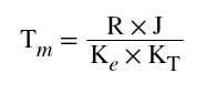 對于直流伺服電動機和交流伺服電動機的具體計算方法,可用電機端電阻R,轉(zhuǎn)動慣量Jm,反電勢系數(shù)Ke,轉(zhuǎn)矩常數(shù)KT等參數(shù)表示: