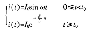 式2中,I0為電流最大值;T為電流脈沖底寬。放電電流曲線見下圖3。t<t0負(fù)載電流呈正弦變化;t≥t0負(fù)載電流呈指數(shù)變化。