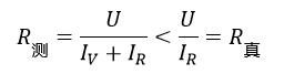 由于電壓表的分流作用使得被測電阻值小于電阻的真實值,當電壓表內(nèi)阻越大的時候其分流作用越弱,被測電阻值就越接近真實值。