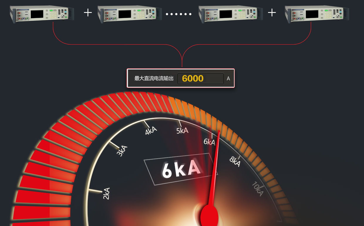 6710C直流標(biāo)準(zhǔn)電流源支持多臺(tái)電流源并聯(lián)輸出,最大直流電流輸出可達(dá)6000A。